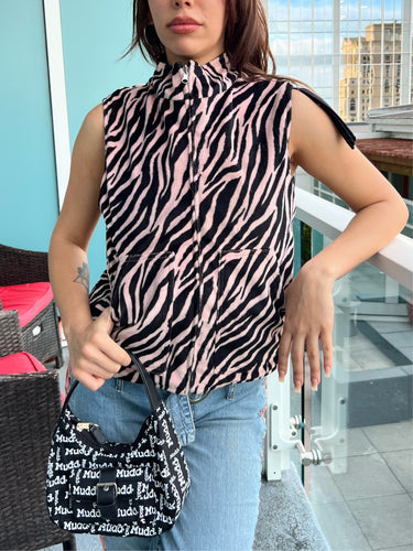 Y2K Misdemeanor Pink Zebra Vest (M)